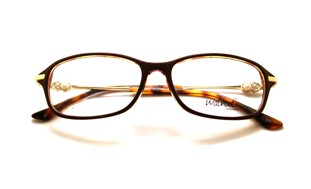 Rectangular oval brown rim highlight with designed golden & stone tip.