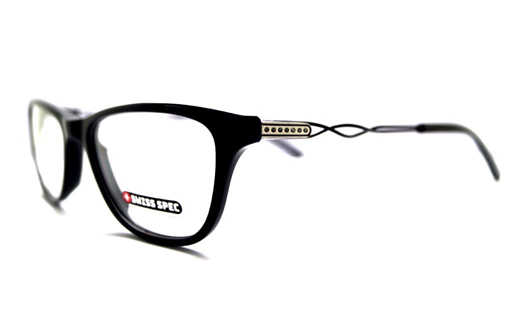 Rectangular shiny black rim highlight with designed metal & stone spring side.
