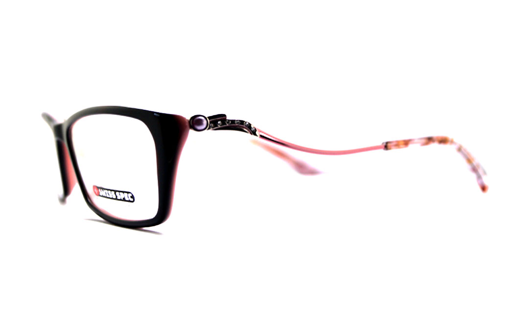 Front dark brown inside light pink rectangular rim with curve spring metal tip.